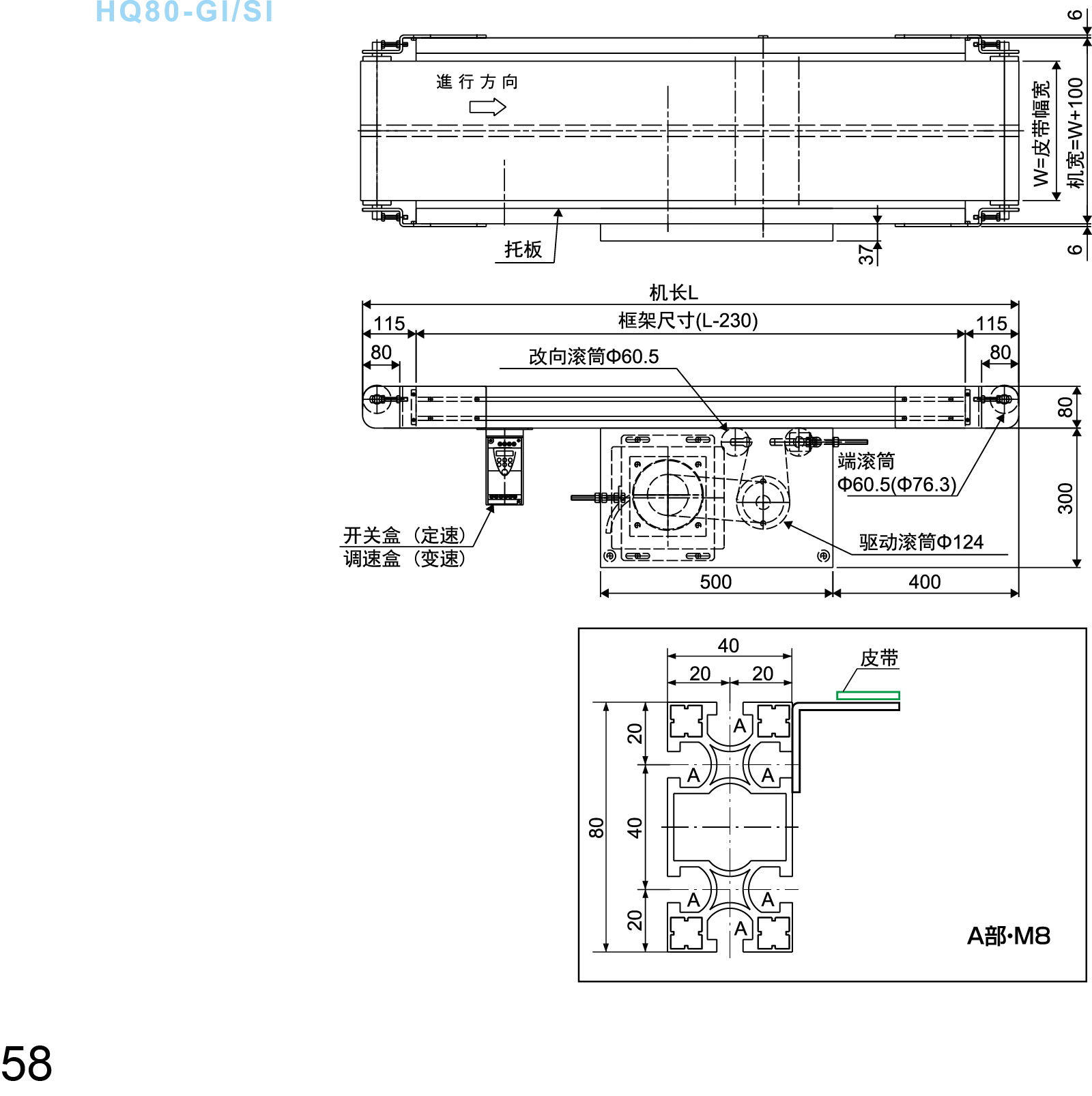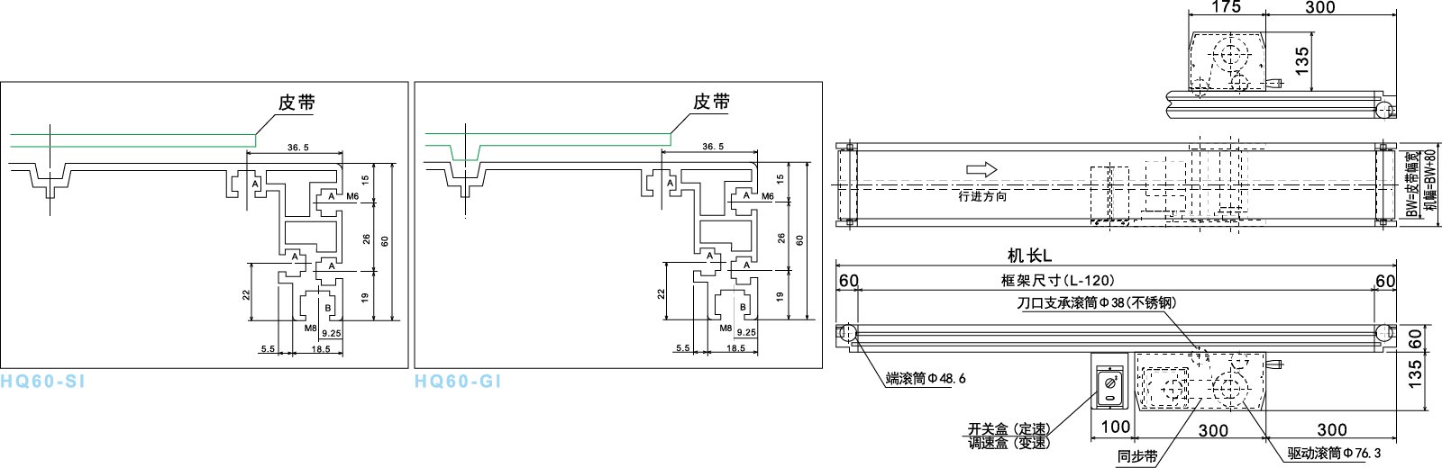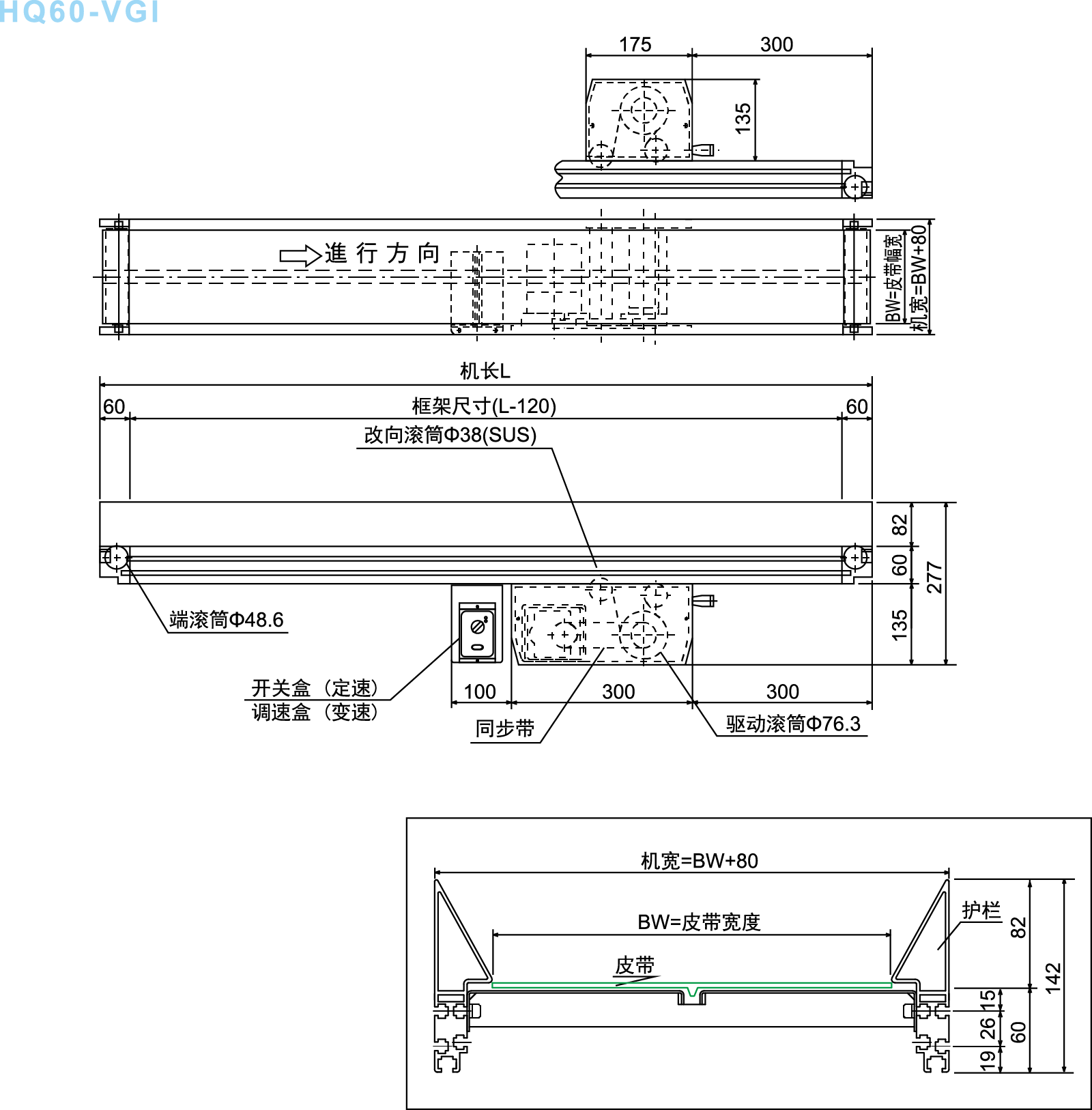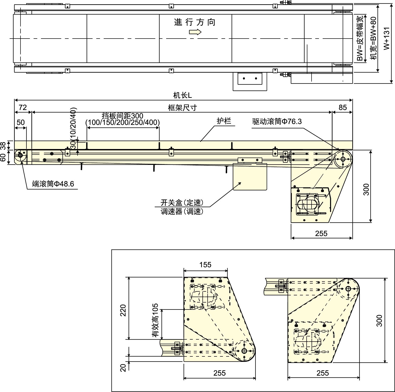 ● Ito ay karaniwang uri ng 34mm belt conveyor, ang sentro ng pagmamaneho ay inilipat ng tiyempo.