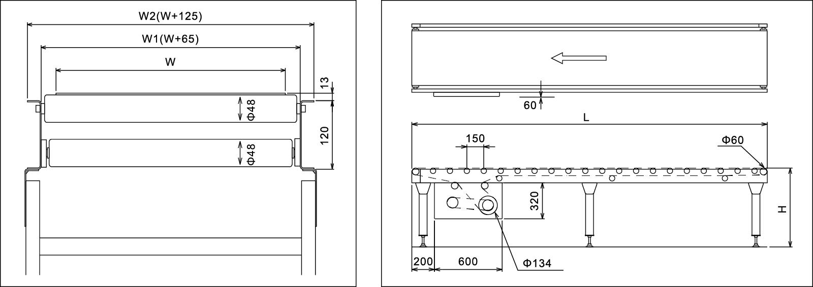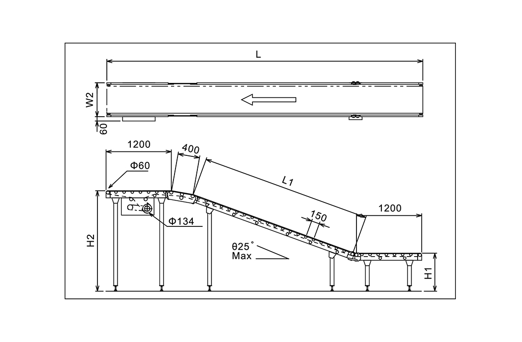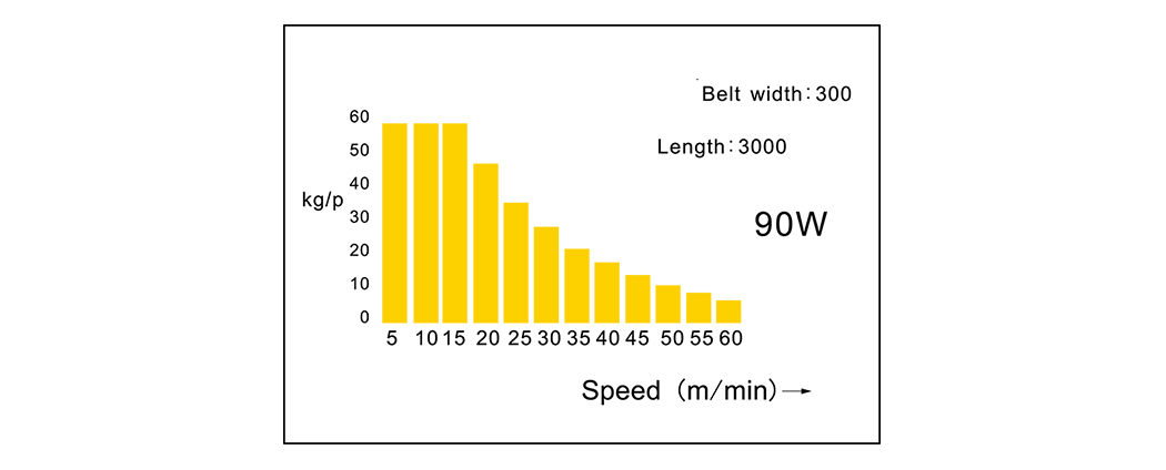 Bilis ng pagkalkula ng nakapirming bilis ng pag -ikot ng bilis1500/1800rpm (50/60Hz) Pagmamaneho ng Roller ∅124, Kahusayan sa Pagmamaneho: 95%