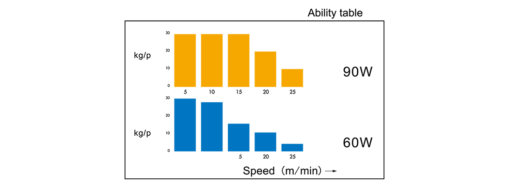 | 1,000 ~ 4,000 | Nakatakdang bilis 60W, variable na bilis 90W |