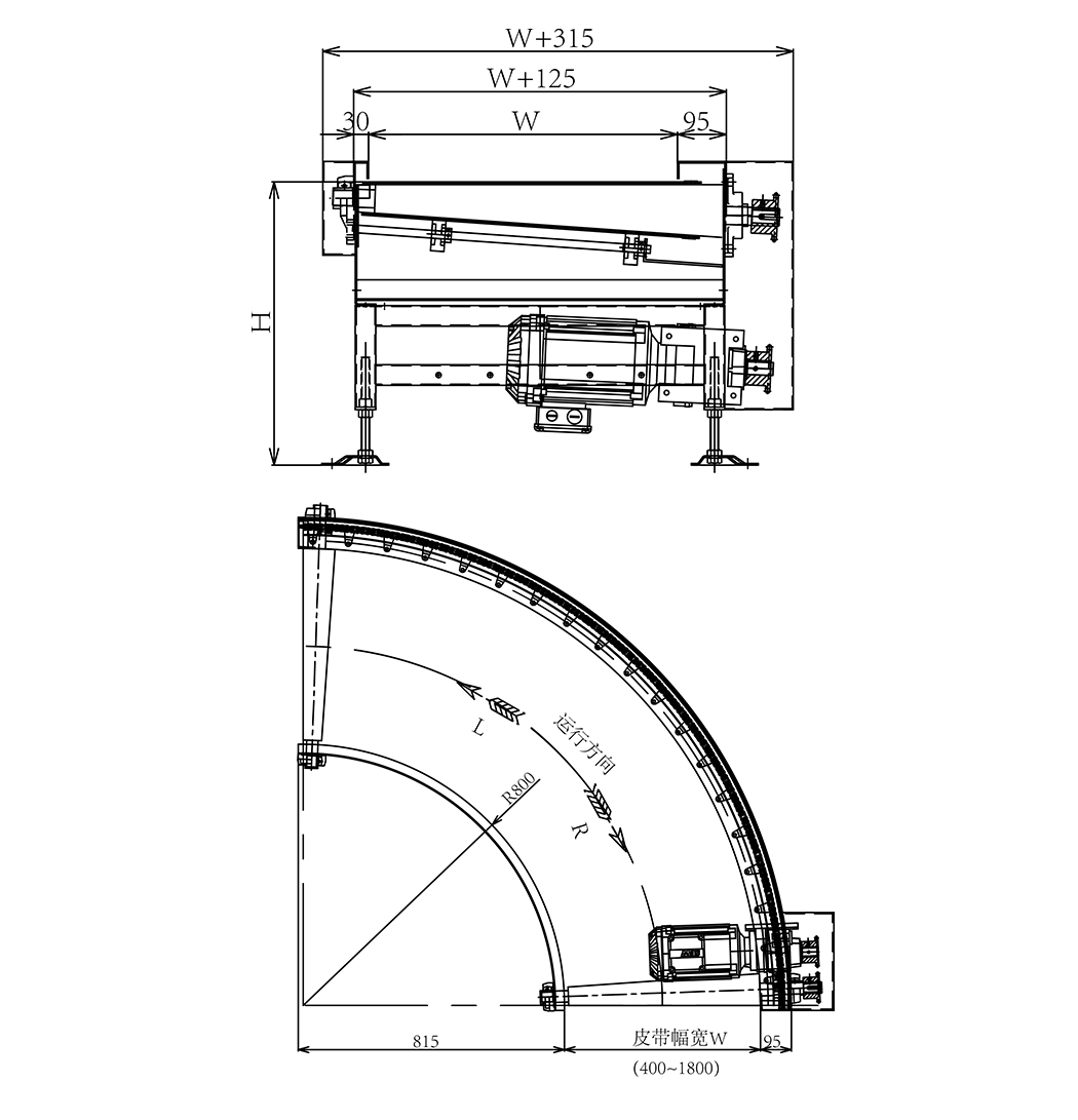 Ang Turning Belt Turning Machine ay isang pangkaraniwang kagamitan na naghahatid, higit sa lahat na ginagamit upang ilipat ang mga materyales mula sa isang linya ng conveyor ng sinturon sa isa pang 90 degree o 180 degree na baligtad na belt conveyor. Binubuo ito ng mga sangkap tulad ng sinturon, mga frame, drive rollers, baligtad na mga roller, mga palyete na nagdadala ng mga palyete, pagbabalik ng mga roller, at mga aparato ng pag-igting. Ang materyal ng conveyor belt ng belt turn machine ay may kasamang iba't ibang mga materyales tulad ng PVC, PU, PVK, atbp Bilang karagdagan sa paggamit para sa paghahatid ng mga ordinaryong materyales, maaari rin itong matugunan ang transportasyon ng mga materyales na may mga espesyal na kinakailangan tulad ng paglaban ng langis, acid at alkali corrosion resistance, at anti-static.