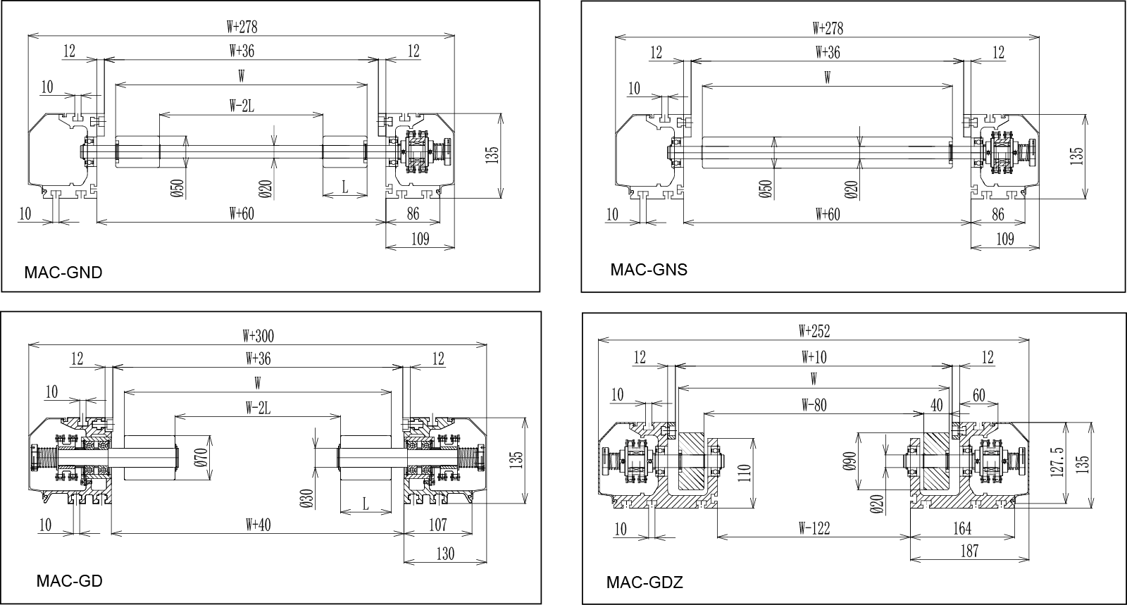 | I -type | MAC-GND (Patuloy na Uri ng Shaft) | MAC-GNS (Uri ng Drum) | MAC-GD (Cantilevered Structure) | MAC-GDZ (Heavy Duty Type) |