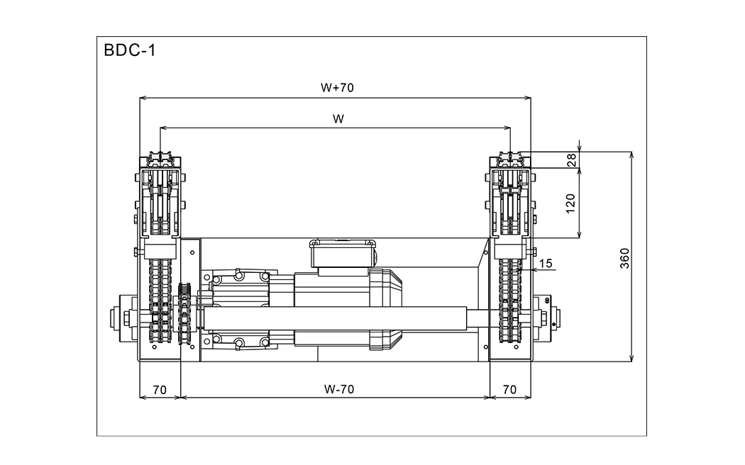 | Lapad ng conveyor | W 70 | W 70 (ang mga motor na may lapad sa ibaba 800 ay panlabas na naka -mount) |