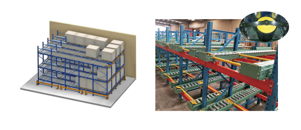 Ang mga istante ng uri ng gravity at mga self sliding roller shelves ay may isang istraktura na katulad ng mga istante ng uri ng beam, ngunit ang mga hindi pinapatakbo na mga track ng roller ay naka-install sa mga beam ng mga istante, at ang anggulo ng roller ng mga roller track ay karaniwang 2-5 °. Ginagamit ng mga istante ng gravity ang anggulo ng ikiling na ito at ang bigat ng mga kalakal mismo upang awtomatikong slide mula sa mataas hanggang mababa. Ang mga istante ng gravity ay angkop para sa mga produktong nasa, out at mataas na daloy. Ang kanilang mga pangunahing tampok ay ang paggamit ng mataas na espasyo at ang istante ay hindi nangangailangan ng panlabas na enerhiya. Lalo silang angkop para sa malaking pamamahala ng bodega tulad ng malamig na imbakan at mga sentro ng pamamahagi ng logistik, at maaaring pinatatakbo ng ordinaryong balanseng forklift.